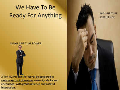 We can’t send out a delegation and call for terms of peace. We do, however, have God’s promise that He won’t give us something that we can’t get ready for. If we properly expose ourselves to the things God is offering in preparation, we will be ready.