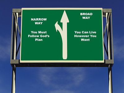 Mat 7:13-14 (NIV) Enter through the narrow gate. For wide is the gate and broad is the road that leads to destruction, and many enter through it. But small is the gate and narrow the road that leads to life, and only a few find it.