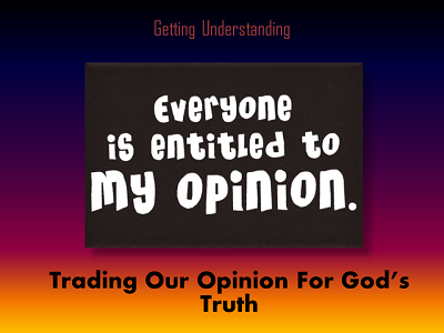 The knowledge in our brains under the anointing of the Holy Spirit will produce understanding. Understanding is knowing what the original meanings were when the Holy Spirit caused that Scripture to be written. Knowing what the Bible says needs the additional information of what it means. If we are left to our own opinions as to what a Scripture means, we will find ourselves heading in a totally wrong direction. Those who sincerely want to go the direction that God wants them to go, will want to give up their own opinions and let God tell them what the verse really means.